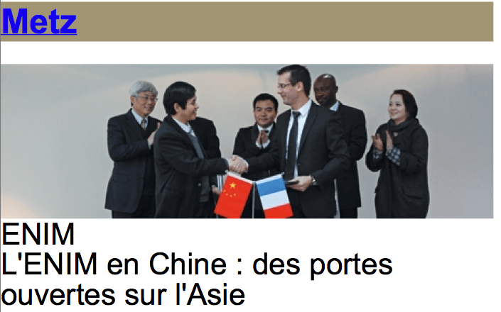 ENIM L’ENIM en Chine : des portes ouvertes sur l’Asie – La Semaine.fr 15 juillet 2014 705 × 440 ENIM L’ENIM en Chine : des portes ouvertes sur l’Asie – La Semaine.fr